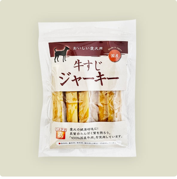 1,490円(税込)国産の牛すじを100%使用しています。 噛めば噛むほど味が出る牛すじのジャーキー! きっと愛犬も納得の味です。 50gあたり225kcal(当社分析値)