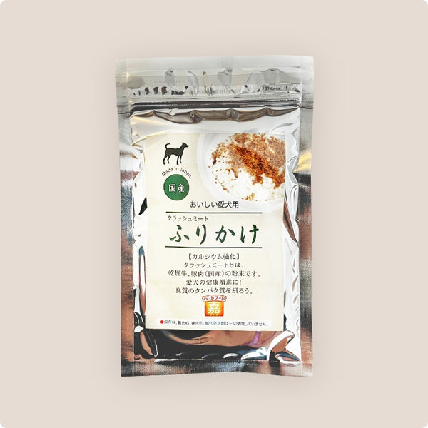 700円(税込)国産牛肉と豚肉の乾燥肉粉末(クラッシュミート)を使用 食の細い子でもペットフードやご飯にふりかけてあげるのがおススメです! 100gあたり530kcal(当社分析値)