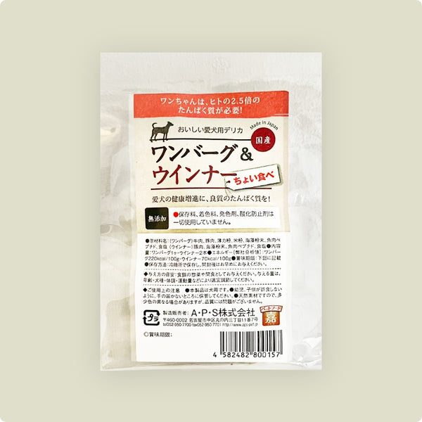 480円(税込)定番のワンバーグとウインナーを少量セットに! お散歩の時や、ちょっとしたお出かけのおともに! プレゼント用にも最適です。